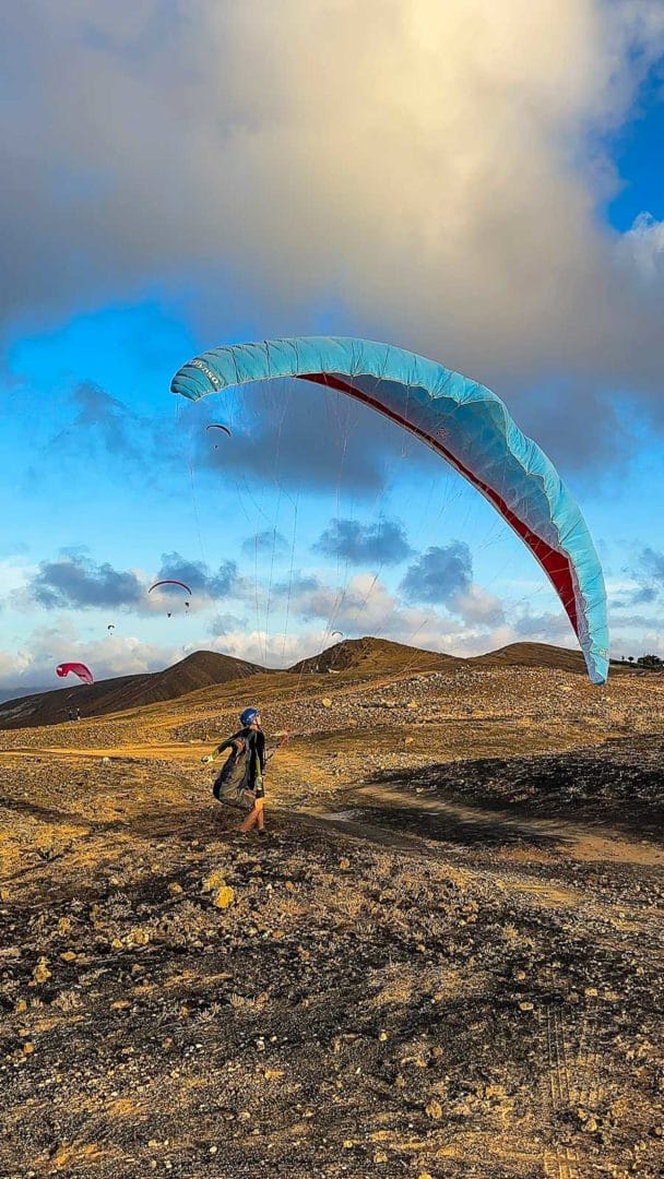 Gestern waren wir an den Pechos zum Training am Boden, zum „Rein-Kai-ten“ und Fliegen. Abends ging sich unser geliebte Sundowner im Krater von El Cuchillo aus💯😎🤘 1 Stunde feinste Soaring-Bedingungen in spektakulärer Kulisse… 💯😍🤘