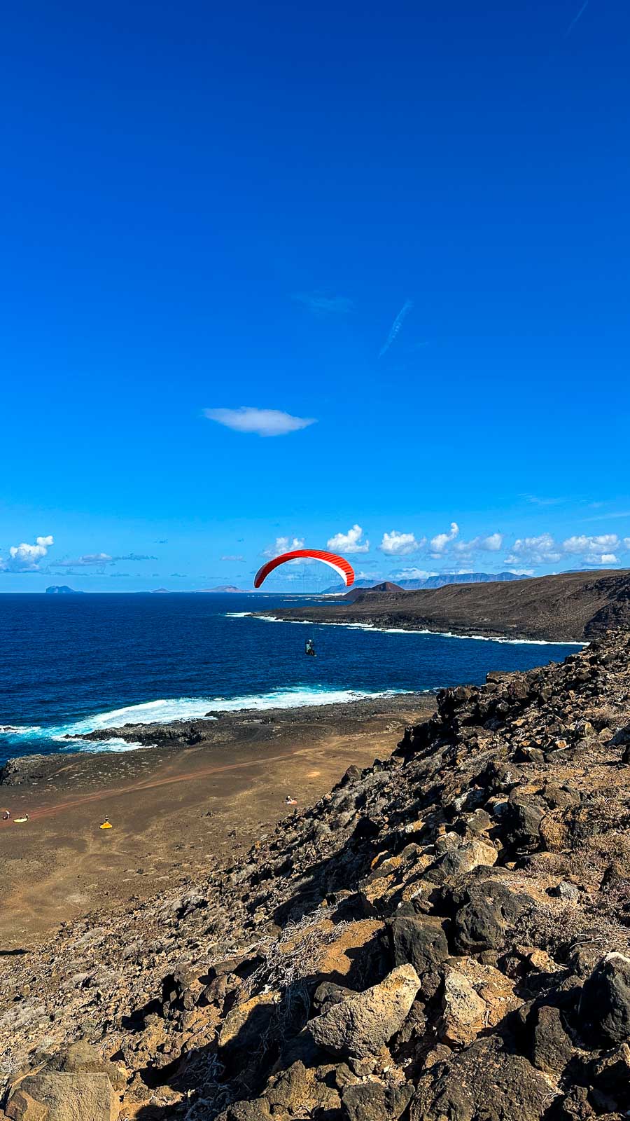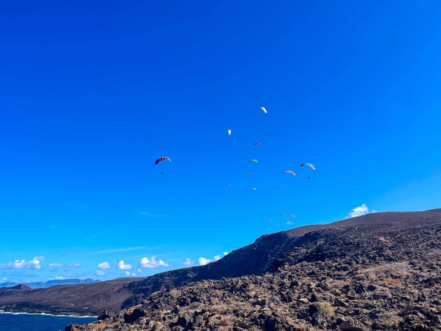 Gestern Morgen sind wir nach Tenesar gefahren… Es ging von morgens bis nachmittags durchweg Fliegen über dem Atlantik. Die ganze Mannschaft war lange in der Luft – teilweise auch zweimal😎 Heli hat währenddessen mit dem einen oder der anderen zwischendurch Nicken, Rollen und Wingover fliegen im Tandem spüren lassen. Megaaaaaaaa!!!!