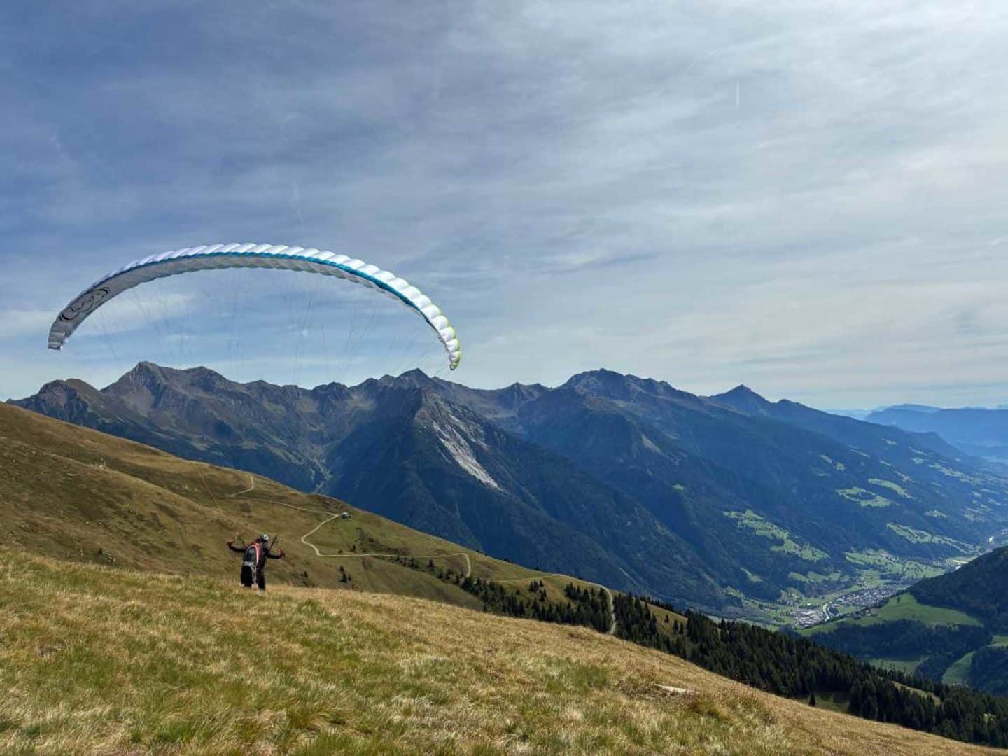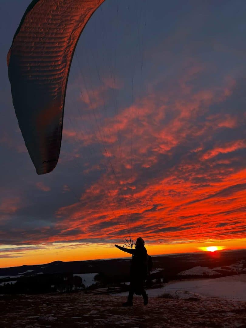 Die Tage waren alle fliegbar, oft habe ich anderen Teilnehmern mit weniger Erfahrung bei der Startvorbereitung geholfen und bin als letzter geflogen. An diesem besagten Abend sind Alev (die Fotografin) und ich als letztes von dem 1700 m Startplatz gestartet.