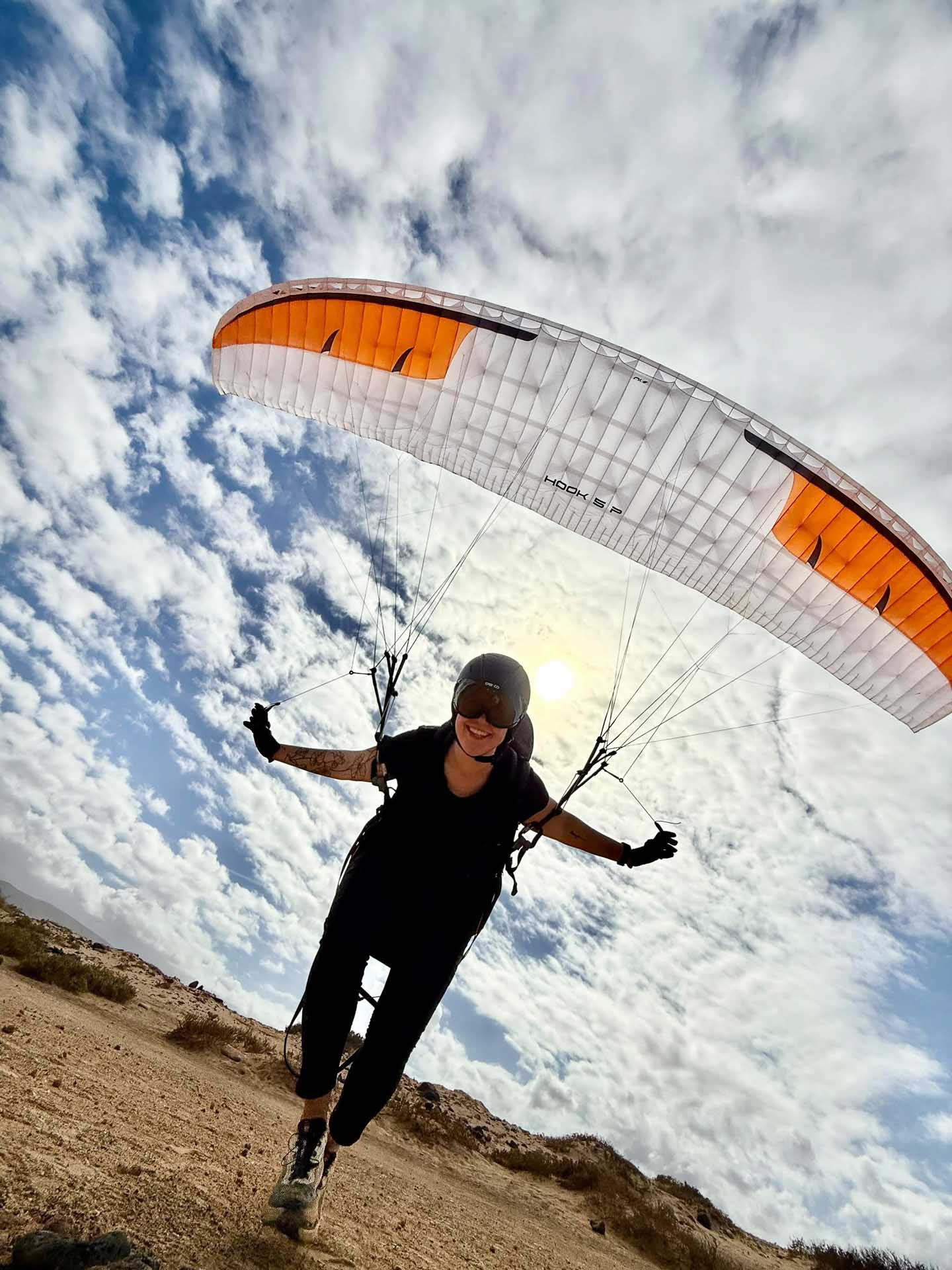 Die Tage waren alle fliegbar, oft habe ich anderen Teilnehmern mit weniger Erfahrung bei der Startvorbereitung geholfen und bin als letzter geflogen. An diesem besagten Abend sind Alev (die Fotografin) und ich als letztes von dem 1700 m Startplatz gestartet.