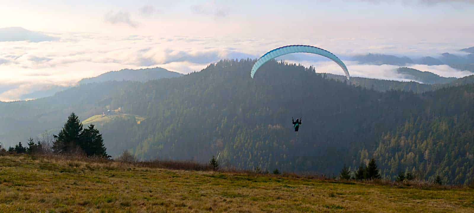 Papillon Landetraining im Schwarzwald: Viele Flüge, Besprechungen in einem sehr professionellen Schulungsraum am Landeplatz, die alpinen Höhendifferenzen und vor allem das kompetente, berufserfahrene und sympathische Lehrerteam haben begeistert.